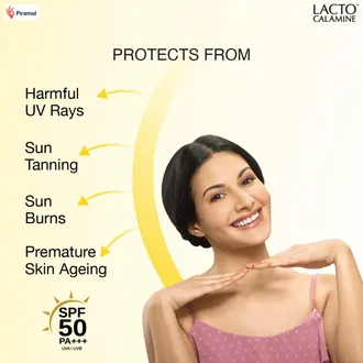 Lacto Calamine Sunscreen is a broadspectrum sunscreen specifically designed for oily skin. This innovative product offers a range of benefits to protect and rejuvenate your skin. The sunscreen shields against both UVA and UVB rays, protecting from tanning, sunburns, and premature skin ageing. Its unique water-based formula ensures a lightweight texture that absorbs quickly into the skin. Enriched with kaolin clay and lemon extract, it gives your skin a clear matte look. Dermatologically tested and paraben-free, this sunscreen is safe for daily use. With Lacto Calamine SPF 50, you can enjoy the sun while keeping your skin protected and nourished.